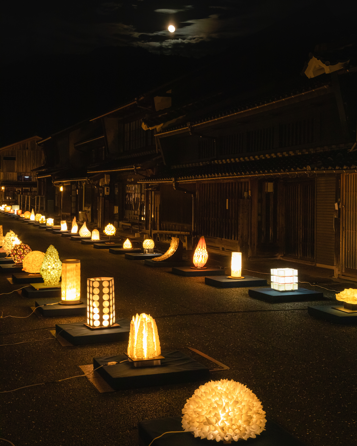 美濃和紙あかりアート展で初めて開催されたイベントで撮影しました。あかりアートが普段よりも多く並べられたうだつの町並みは、参加者しか見ることができなかったとても素敵な空間でした。