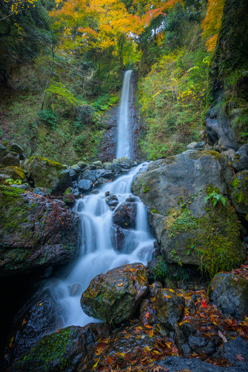 地元で育ち、子供の頃から馴染みのある滝です。紅葉に包まれた養老公園。飛瀑の雄大さもさることながら、滝水が険しい岩角を打ちながら川下へ流れてゆく美しさをお伝えたい一心で撮影しました。
